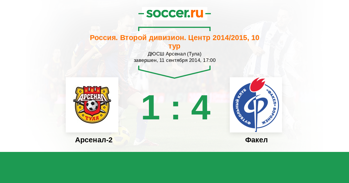 Россия. Вторая лига. Группа 3 30.04.2015 Факел Логотип футбольный клуб Факел (Воронеж) 2:1 Логотип футбольный клуб Арсенал-2 (Тула) Арсенал-2