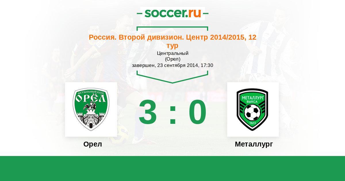 Россия. Вторая лига. Группа 3 21.04.2014 Орел Логотип футбольный клуб Орел 0:1 Логотип футбольный клуб Металлург (Выкса) Металлург
