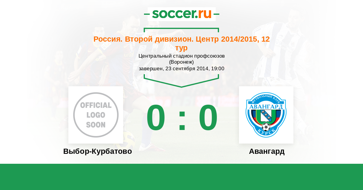 Россия. Вторая лига. Группа 3 12.05.2015 Авангард   3:0 Логотип футбольный клуб Выбор-Курбатово (Воронеж) Выбор-Курбатово