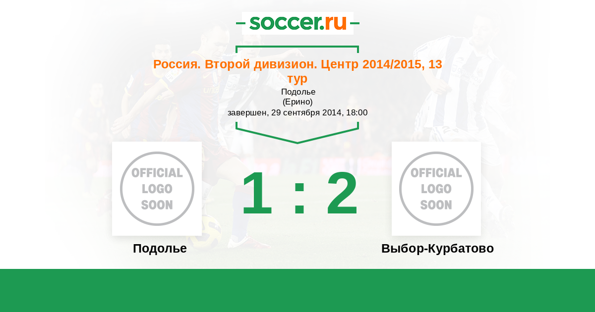 Россия. Вторая лига. Группа 3 05.06.2015 Подолье Логотип футбольный клуб Подолье (Подольский район) 1:2 Логотип футбольный клуб Орел Орел