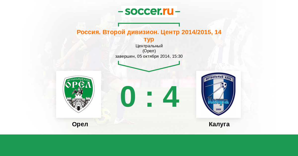 Россия. Вторая лига. Группа 3 24.05.2015 Калуга Логотип футбольный клуб Калуга 4:0 Логотип футбольный клуб Орел Орел