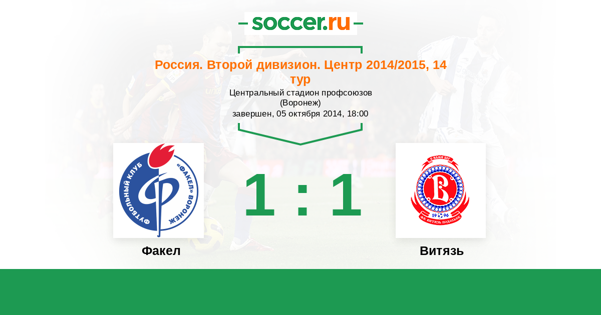 Россия. Вторая лига. Группа 3 26.04.2014 Факел Логотип футбольный клуб Факел (Воронеж) 1:1 Логотип футбольный клуб Витязь (Подольск) Витязь