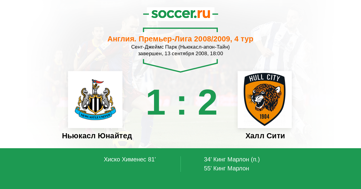 Протокол матча Ньюкасл Юнайтед против Халл Сити