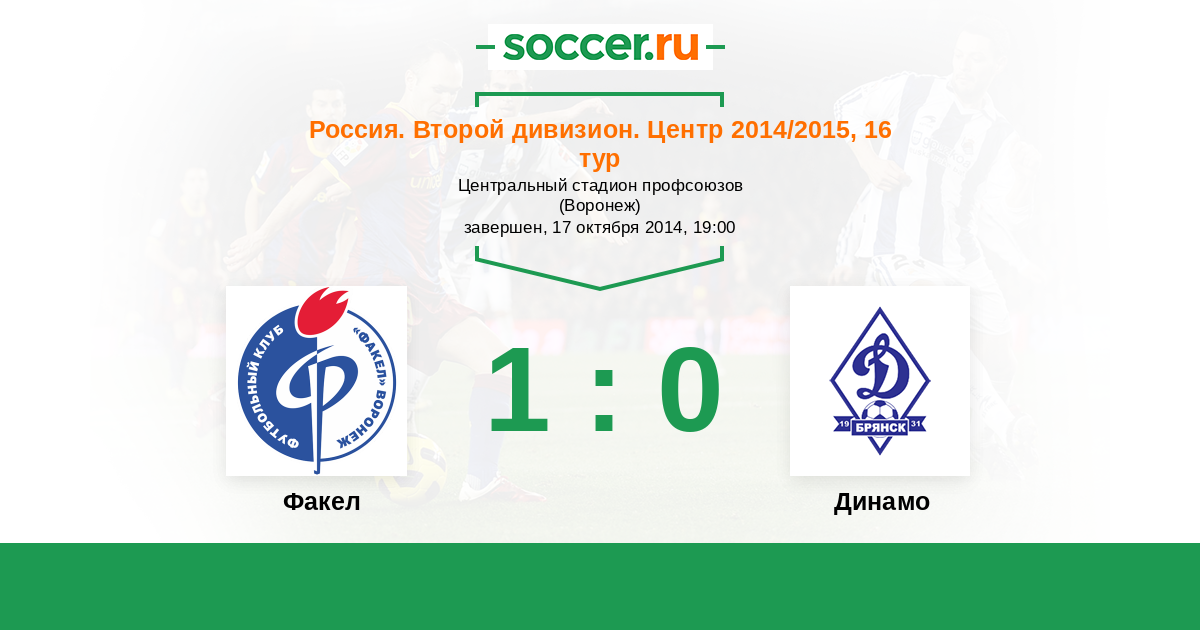Россия. Вторая лига. Группа 3 15.04.2014 Факел Логотип футбольный клуб Факел (Воронеж) 1:0 Логотип футбольный клуб Динамо Брянск Динамо Брянск