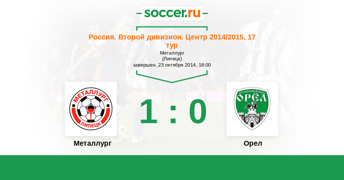Россия. Вторая лига. Группа 3 19.09.2013 Металлург Логотип футбольный клуб Металлург (Липецк) 2:1 Логотип футбольный клуб Орел Орел