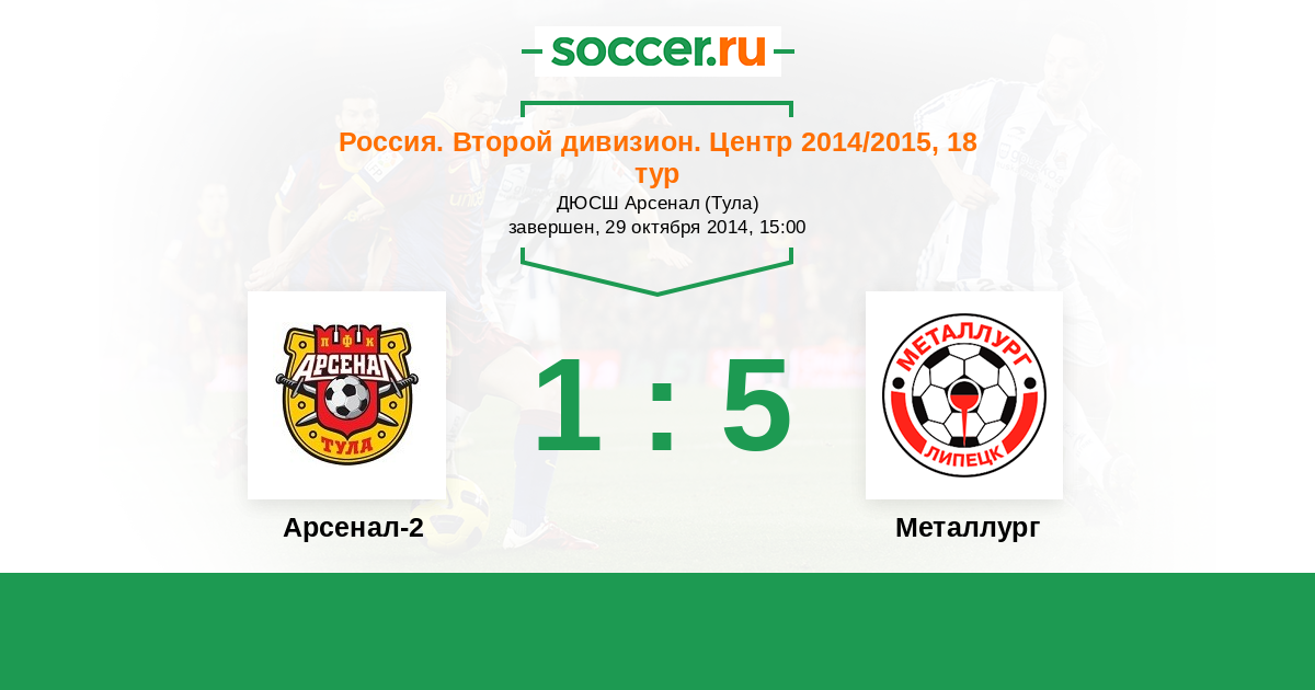 Россия. Вторая лига. Группа 3 02.08.2014 Металлург Логотип футбольный клуб Металлург (Липецк) 2:1 Логотип футбольный клуб Арсенал-2 (Тула) Арсенал-2