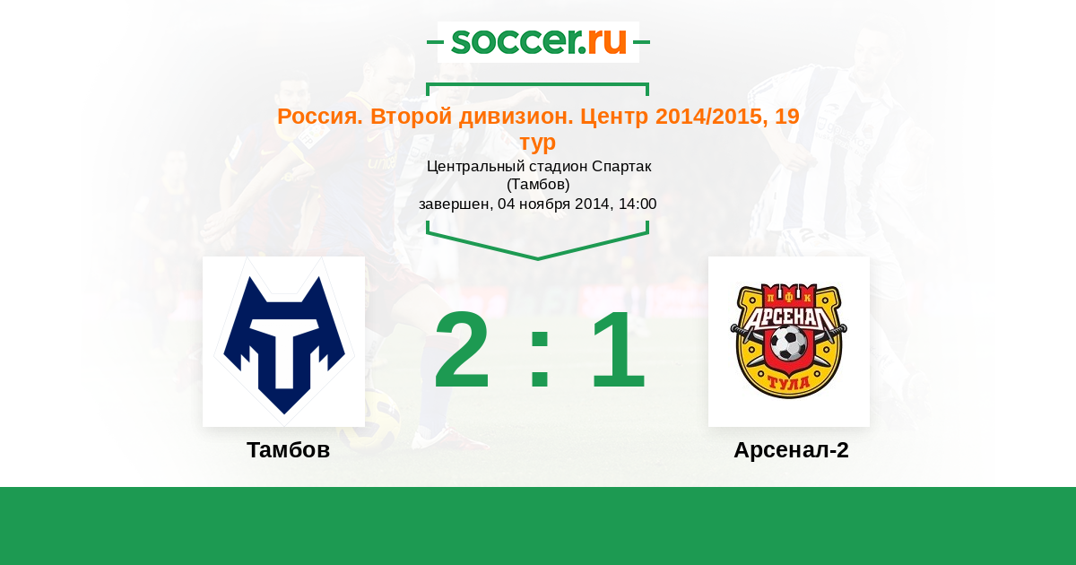 Россия. Вторая лига. Группа 3 19.09.2015 Тамбов Логотип футбольный клуб Тамбов 2:1 Логотип футбольный клуб Арсенал-2 (Тула) Арсенал-2
