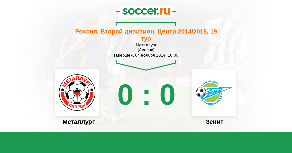 Россия. Вторая лига. Группа 3 30.07.2013 Металлург Логотип футбольный клуб Металлург (Липецк) 0:0 Логотип футбольный клуб Зенит (Пенза) Зенит