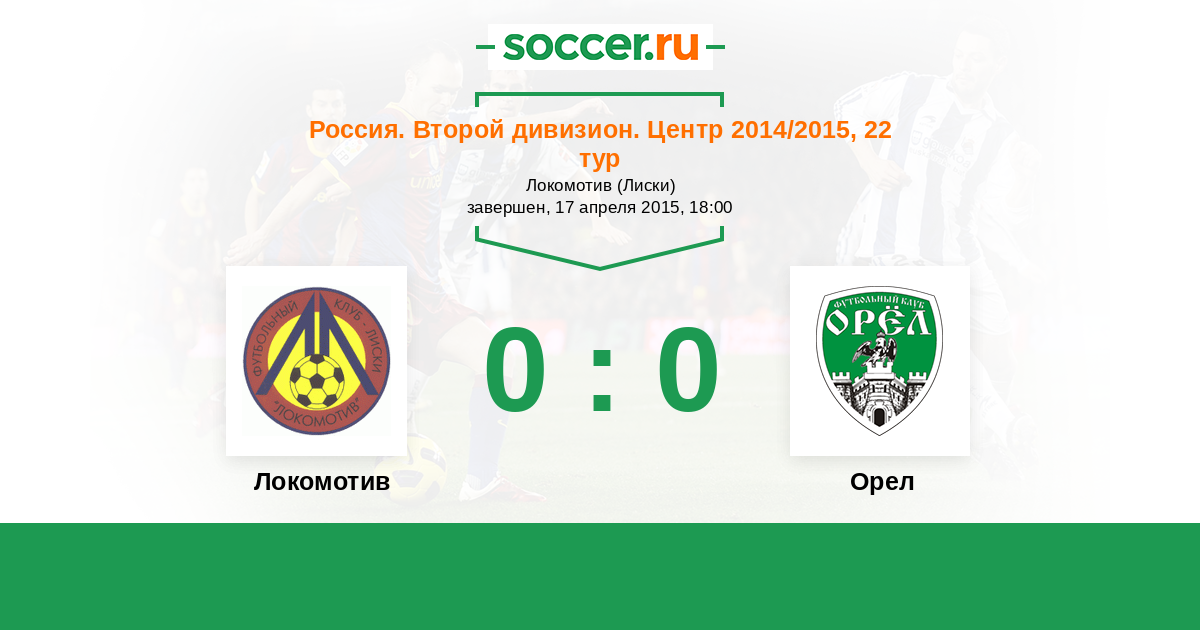 Россия. Вторая лига. Группа 3 14.09.2015 Локомотив Логотип футбольный клуб Локомотив (Лиски) 1:0 Логотип футбольный клуб Орел Орел