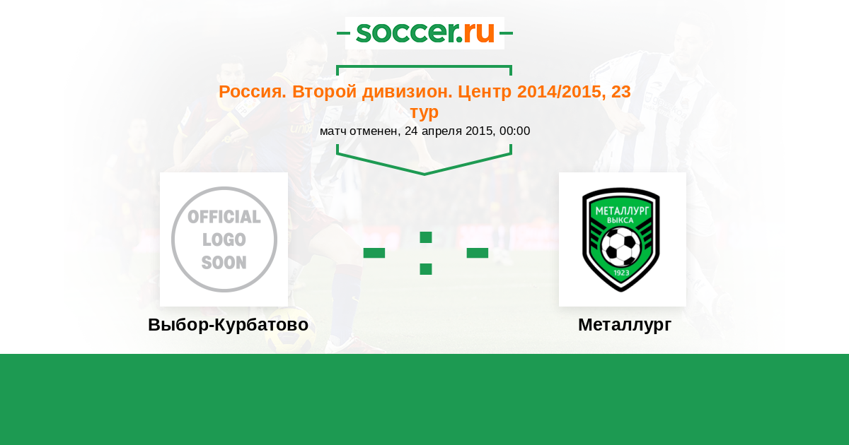Россия. Вторая лига. Группа 3 30.05.2015 Металлург   3:0 Логотип футбольный клуб Выбор-Курбатово (Воронеж) Выбор-Курбатово