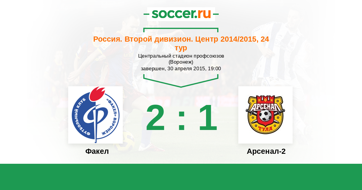 Россия. Вторая лига. Группа 3 11.09.2014 Арсенал-2 Логотип футбольный клуб Арсенал-2 (Тула) 1:4 Логотип футбольный клуб Факел (Воронеж) Факел