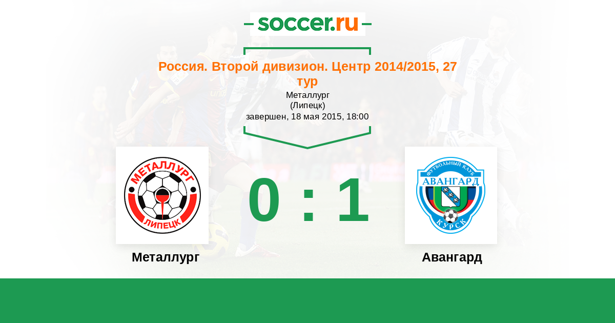 Россия. Вторая лига. Группа 3 30.05.2016 Металлург Логотип футбольный клуб Металлург (Липецк) 0:4 Логотип футбольный клуб Авангард (Курск) Авангард