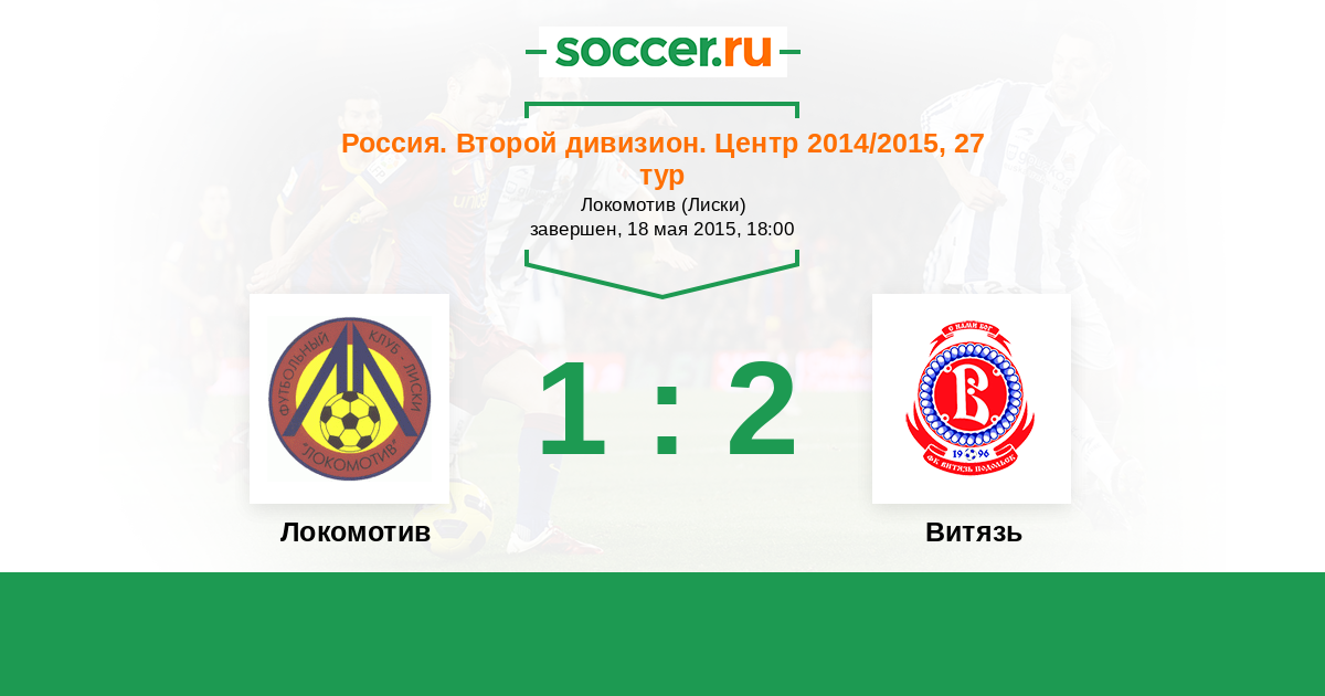 Россия. Вторая лига. Группа 3 01.11.2015 Витязь Логотип футбольный клуб Витязь (Подольск) 2:1 Логотип футбольный клуб Локомотив (Лиски) Локомотив