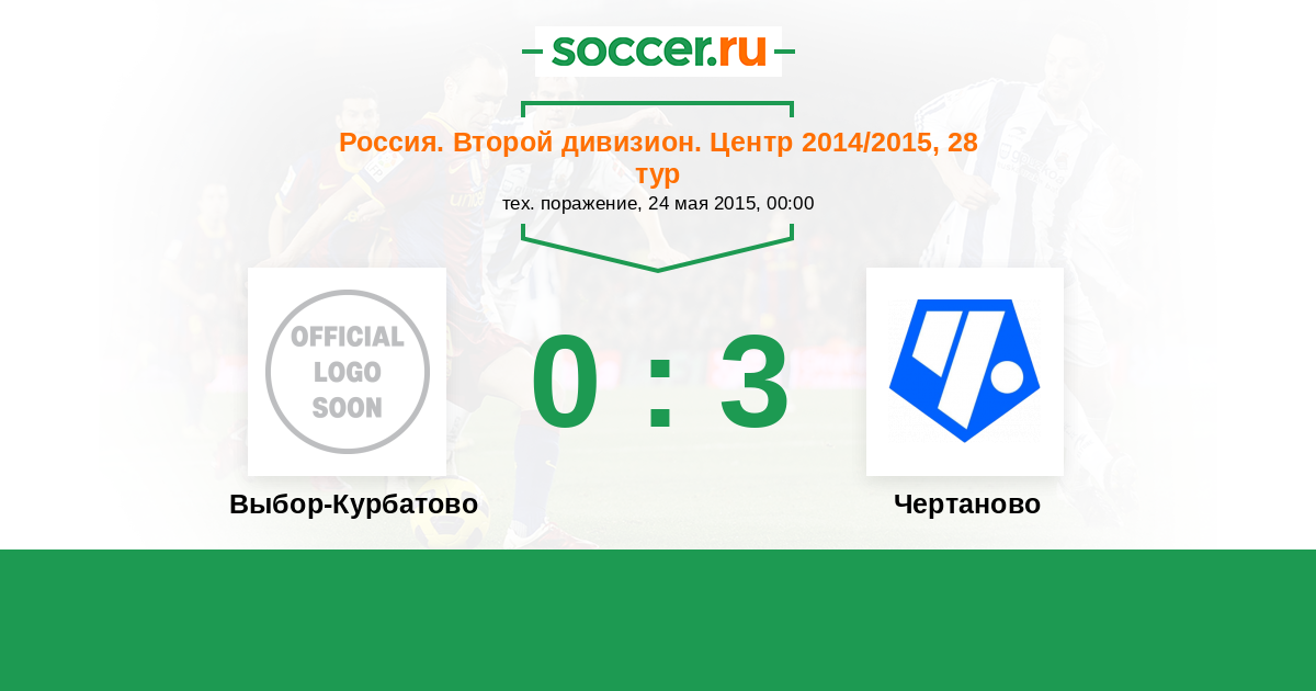 Россия. Вторая лига. Группа 3 24.05.2015 Выбор-Курбатово Логотип футбольный клуб Выбор-Курбатово (Воронеж) 0:3 Логотип футбольный клуб Чертаново (Москва) Чертаново