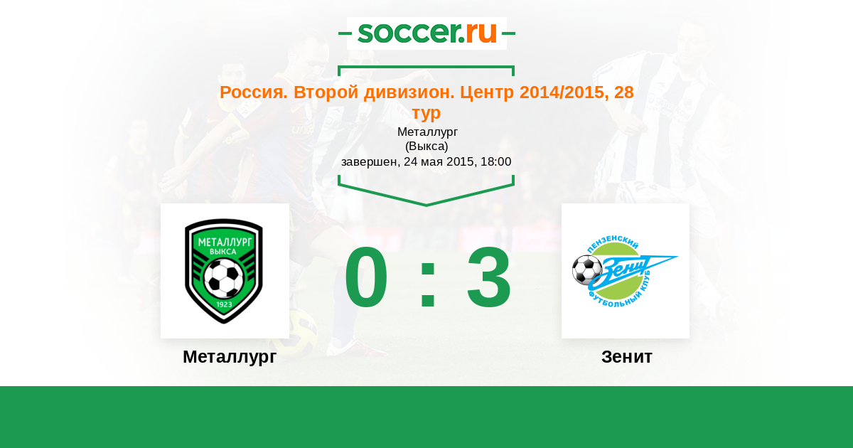 Россия. Вторая лига. Группа 3 24.05.2015 Металлург Логотип футбольный клуб Металлург (Выкса) 0:3 Логотип футбольный клуб Зенит (Пенза) Зенит
