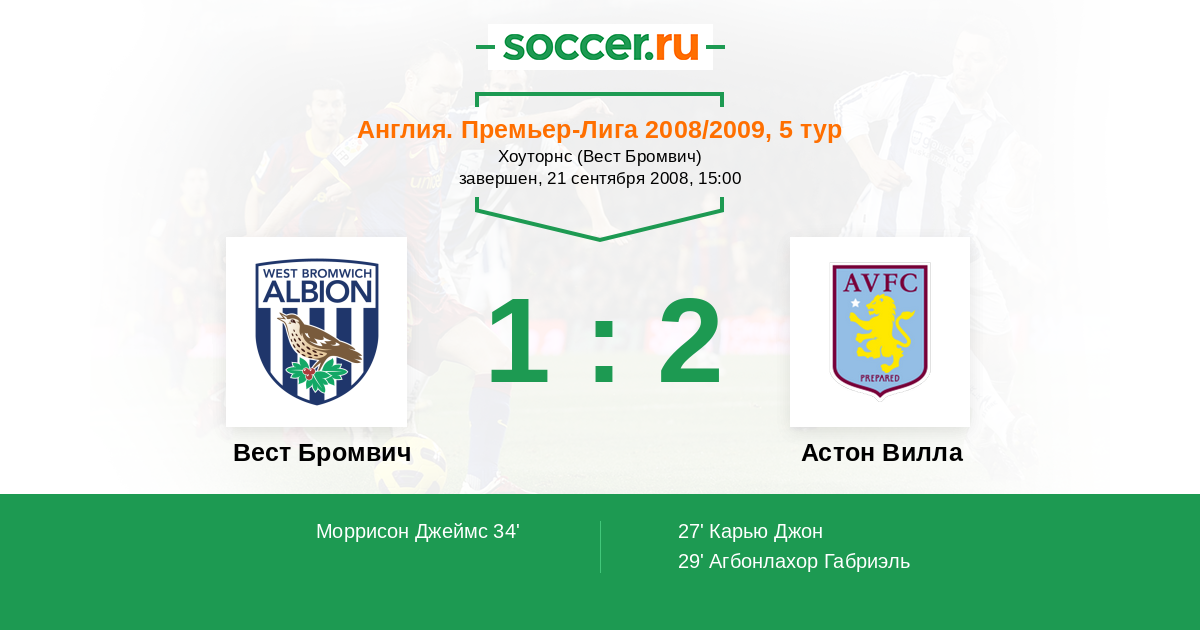 Протокол матча Вест Бромвич против Астон Вилла