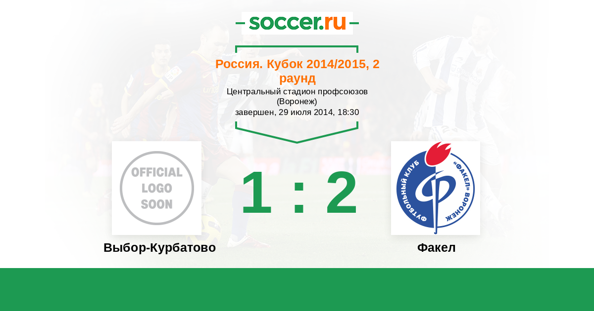 Россия. Вторая лига. Группа 3 10.11.2014 Факел   1:0 Логотип футбольный клуб Выбор-Курбатово (Воронеж) Выбор-Курбатово
