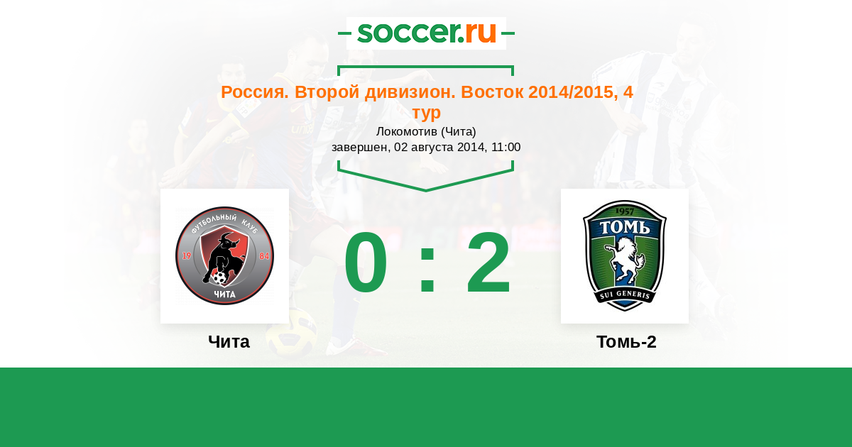 Россия. 2-й дивизион. Восток 13.10.2014 Томь-2 Логотип футбольный клуб Томь-2 (Томск) 3:1 Логотип футбольный клуб Чита Чита