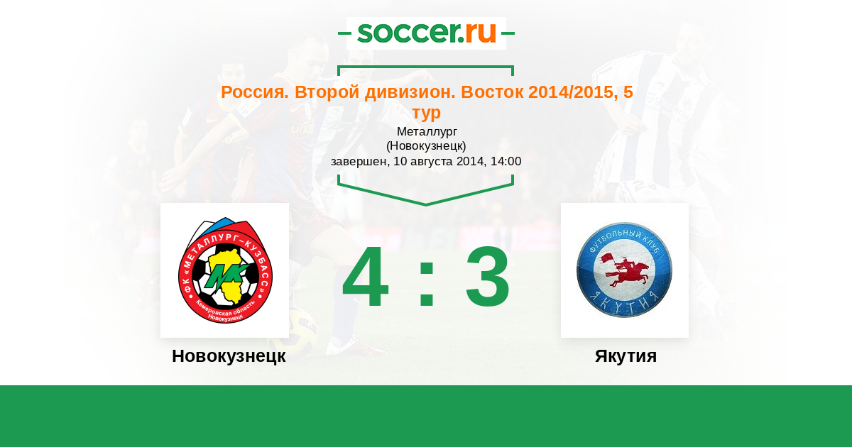 Россия. 2-й дивизион. Восток 30.09.2014 Якутия Логотип футбольный клуб Якутия (Якутск) 1:1 Логотип футбольный клуб Новокузнецк Новокузнецк
