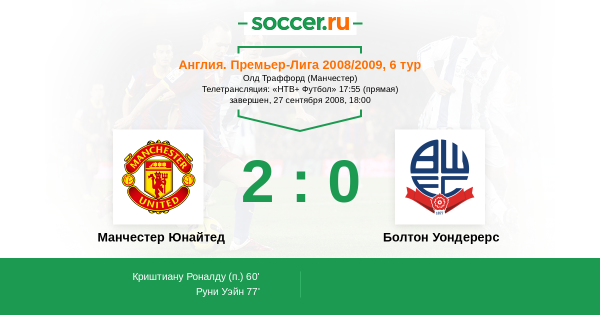 Протокол матча Манчестер Юнайтед против Болтон Уондерерс