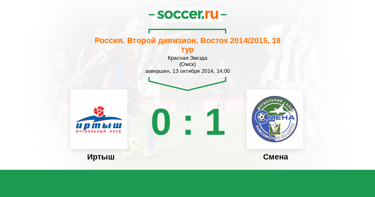 Россия. 2-й дивизион. Восток 01.06.2014 Смена Логотип футбольный клуб Смена (Комсомольск-на-Амуре) 3:0 Логотип футбольный клуб Иртыш (Омск) Иртыш
