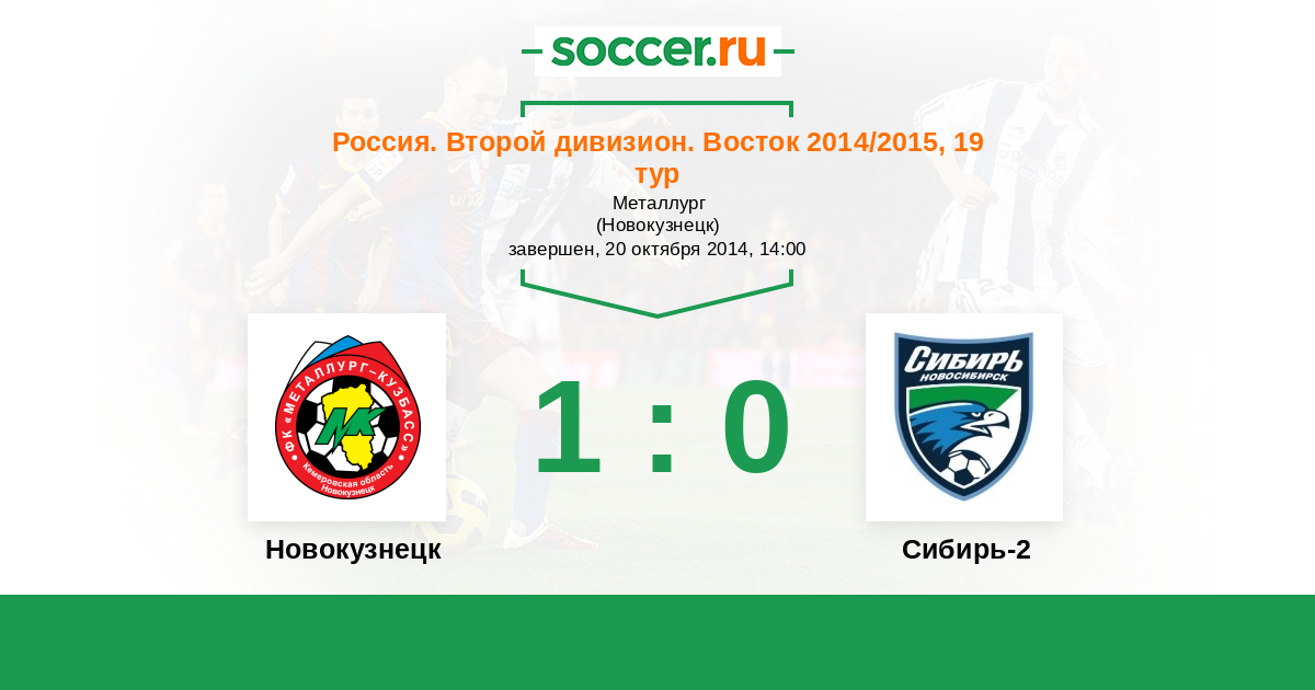 Россия. 2-й дивизион. Восток 21.09.2011 Сибирь-2 Логотип футбольный клуб Сибирь-2 (Новосибирск) 0:5 Логотип футбольный клуб Металлург-Кузбасс (Новокузнецк) Металлург-Кузбасс
