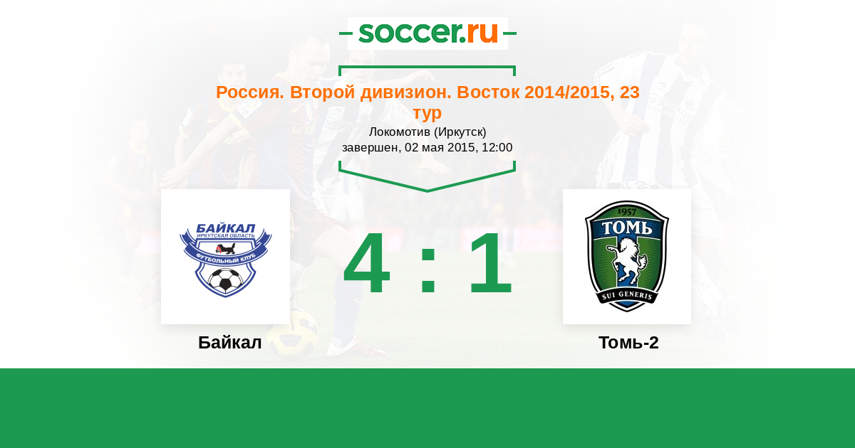 Россия. 2-й дивизион. Восток 30.07.2014 Байкал Логотип футбольный клуб Байкал (Иркутск) 2:0 Логотип футбольный клуб Томь-2 (Томск) Томь-2