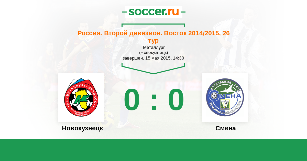 Россия. 2-й дивизион. Восток 03.10.2014 Смена Логотип футбольный клуб Смена (Комсомольск-на-Амуре) 3:0 Логотип футбольный клуб Новокузнецк Новокузнецк