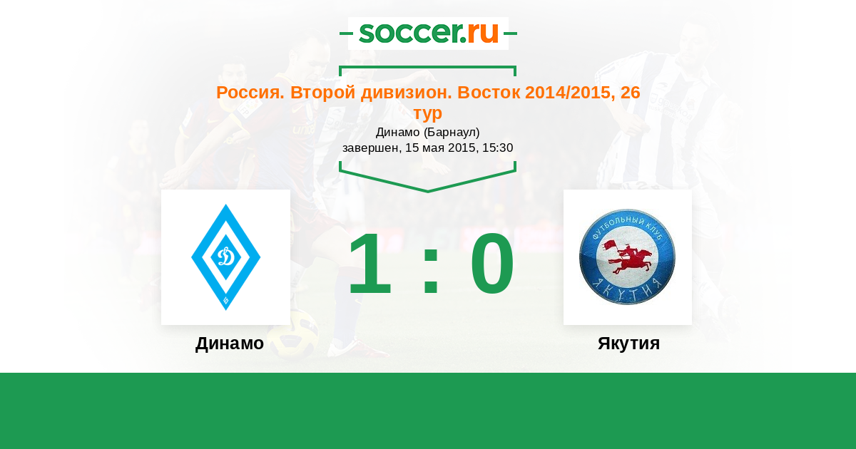 Россия. 2-й дивизион. Восток 22.10.2015 Якутия Логотип футбольный клуб Якутия (Якутск) 2:2 Логотип футбольный клуб Динамо Барнаул Динамо Барнаул