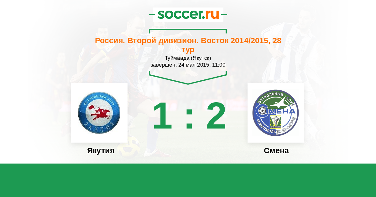 Россия. 2-й дивизион. Восток 16.05.2014 Смена Логотип футбольный клуб Смена (Комсомольск-на-Амуре) 2:1 Логотип футбольный клуб Якутия (Якутск) Якутия