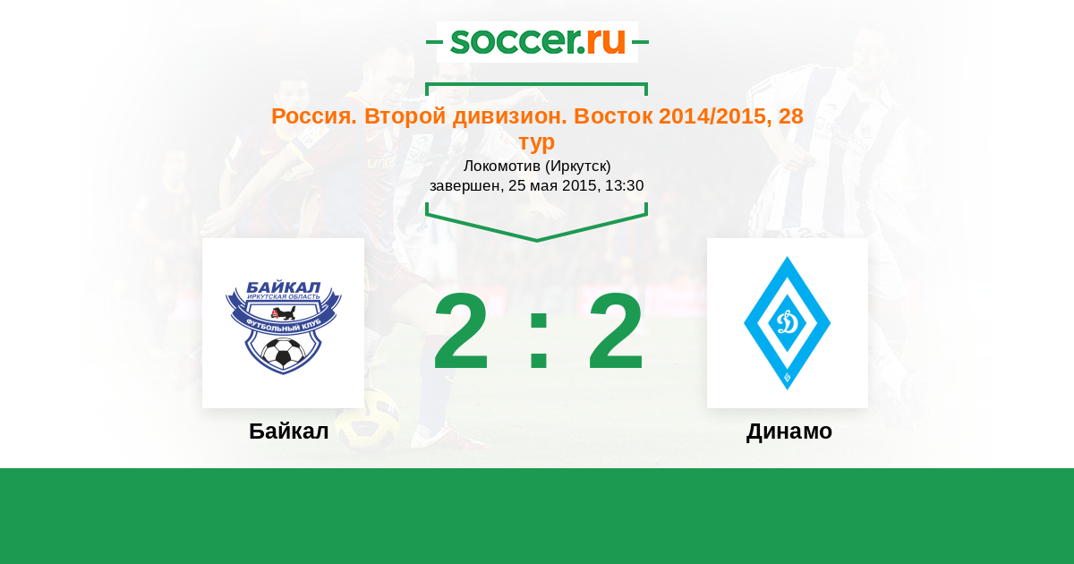 Россия. 2-й дивизион. Восток 22.05.2012 Байкал Логотип футбольный клуб Байкал (Иркутск) 1:0 Логотип футбольный клуб Динамо Барнаул Динамо Барнаул