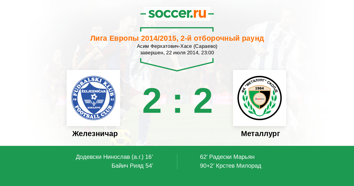 Протокол матча Железничар против Металлург