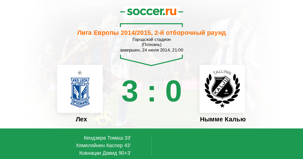 Протокол матча Лех против Нымме Калью