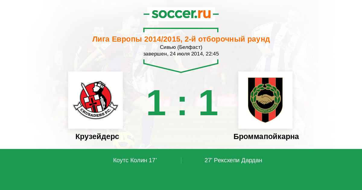 Протокол матча Крузейдерс против Броммапойкарна