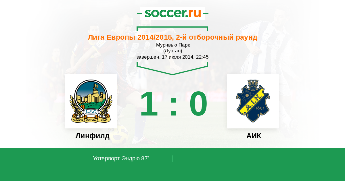 Протокол матча Линфилд против АИК