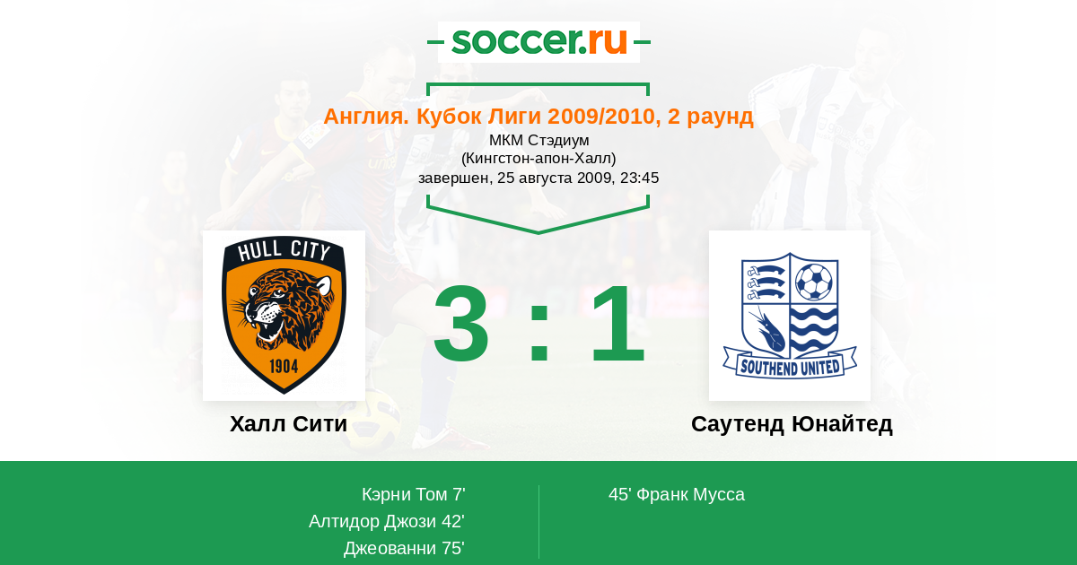 Протокол матча Халл Сити против Саутенд Юнайтед