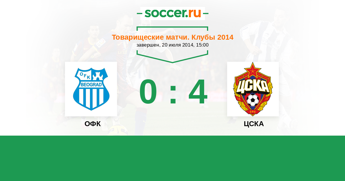 Товарищеские матчи. Клубы 04.07.2024 ЦСКА Логотип футбольный клуб ЦСКА (Москва) 4:0 Логотип футбольный клуб ОФК (Белград) ОФК