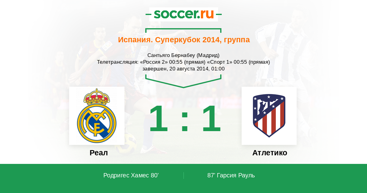 Протокол матча Реал против Атлетико