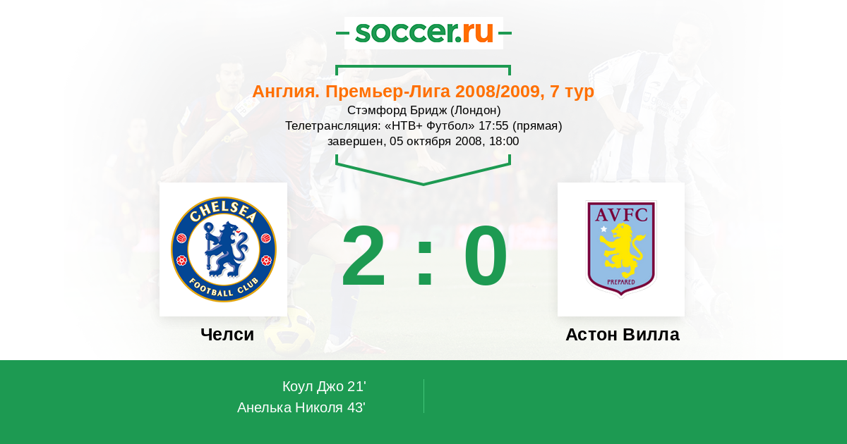 Протокол матча Челси против Астон Вилла