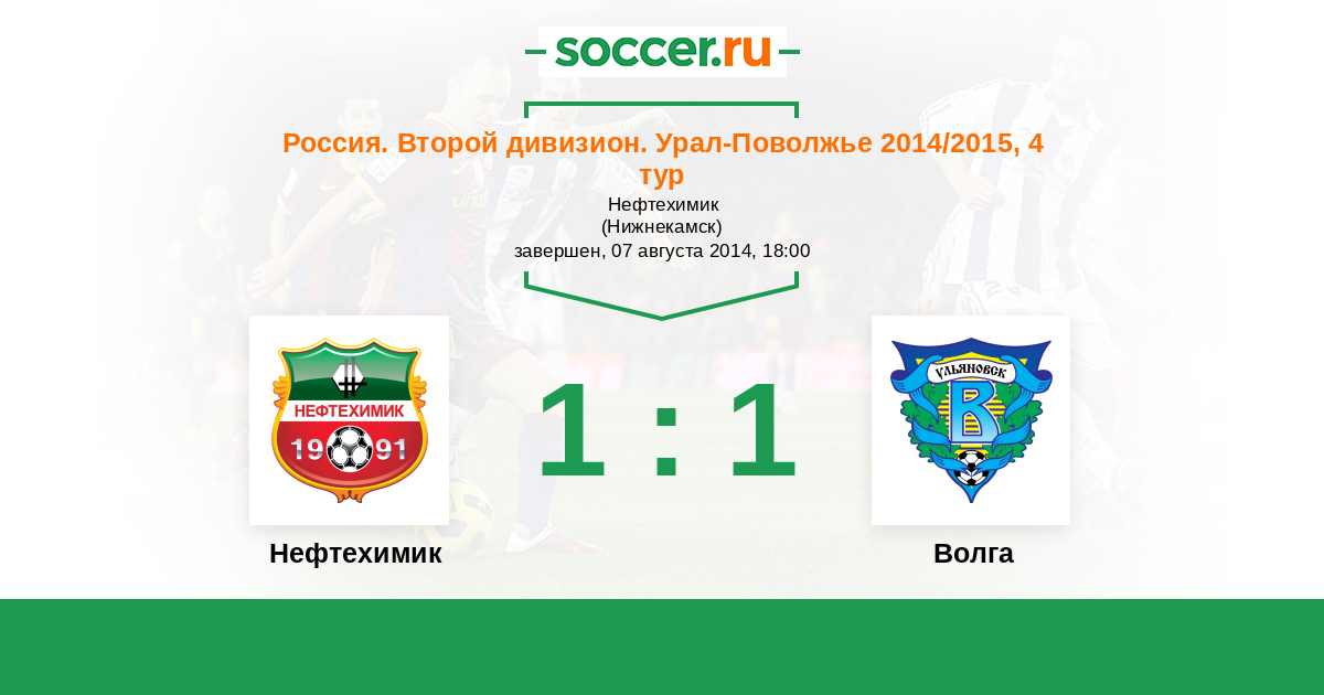 Россия. Вторая лига. Группа 4 20.07.2015 Нефтехимик Логотип футбольный клуб Нефтехимик (Нижнекамск) 2:0 Логотип футбольный клуб Волга (Ульяновск) Волга