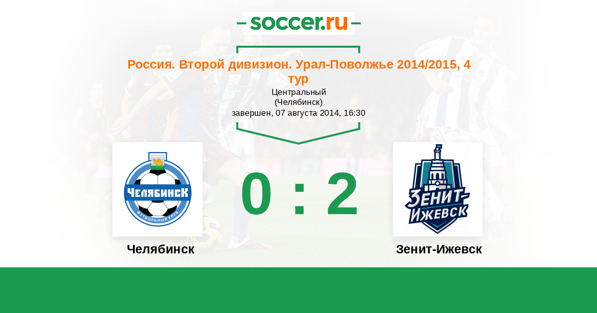 Россия. Вторая лига. Группа 4 04.10.2014 Зенит-Ижевск Логотип футбольный клуб Зенит-Ижевск 0:0 Логотип футбольный клуб Челябинск Челябинск