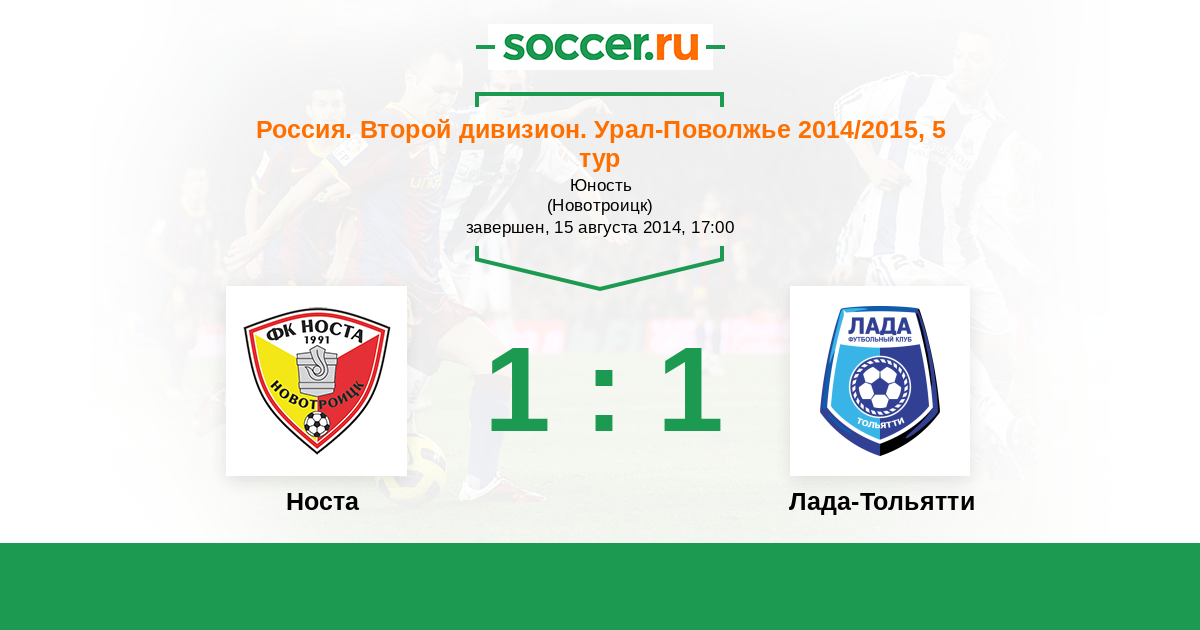 Россия. Вторая лига. Группа 4 28.07.2015 Носта Логотип футбольный клуб Носта (Новотроицк) 1:1 Логотип футбольный клуб Лада-Тольятти Лада-Тольятти