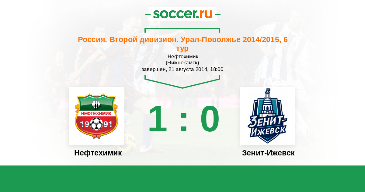 Россия. Вторая лига. Группа 4 30.08.2015 Нефтехимик Логотип футбольный клуб Нефтехимик (Нижнекамск) 3:2 Логотип футбольный клуб Зенит-Ижевск Зенит-Ижевск
