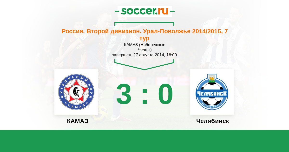 Россия. Вторая лига. Группа 4 04.09.2013 Челябинск Логотип футбольный клуб Челябинск 3:1 Логотип футбольный клуб КАМАЗ (Набережные Челны) КАМАЗ