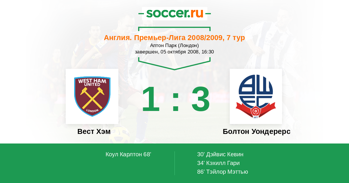 Протокол матча Вест Хэм против Болтон Уондерерс