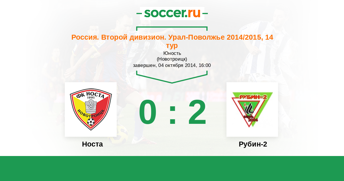 Россия. Вторая лига. Группа 4 07.08.2014 Рубин-2 Логотип футбольный клуб Рубин-2 (Казань) 2:0 Логотип футбольный клуб Носта (Новотроицк) Носта