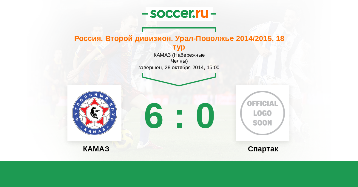Россия. Вторая лига. Группа 4 28.10.2014 КАМАЗ   6:0 Логотип футбольный клуб Спартак (Йошкар-Ола) Спартак