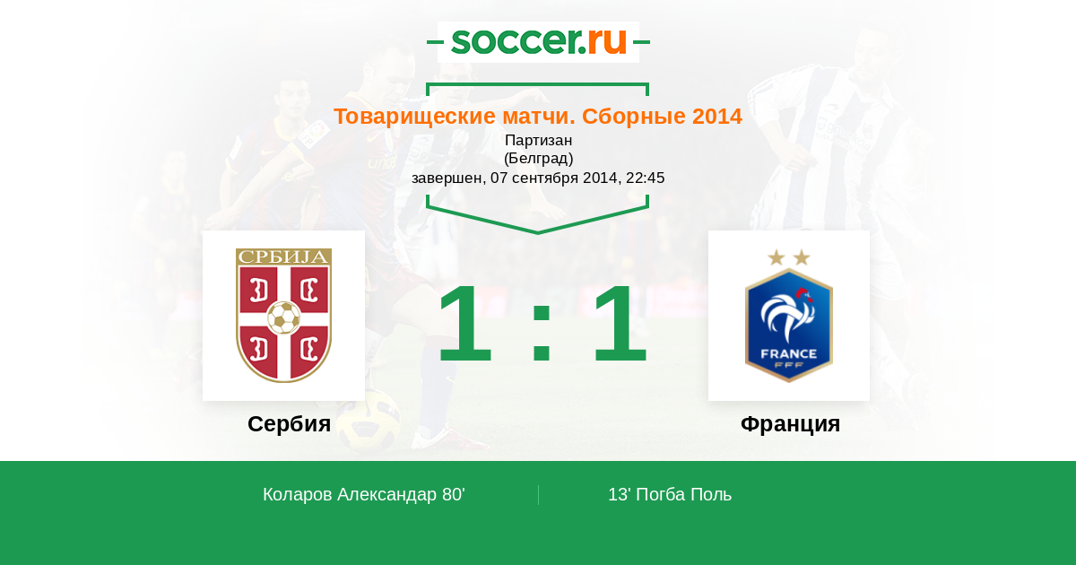 Протокол матча Сербия против Франция