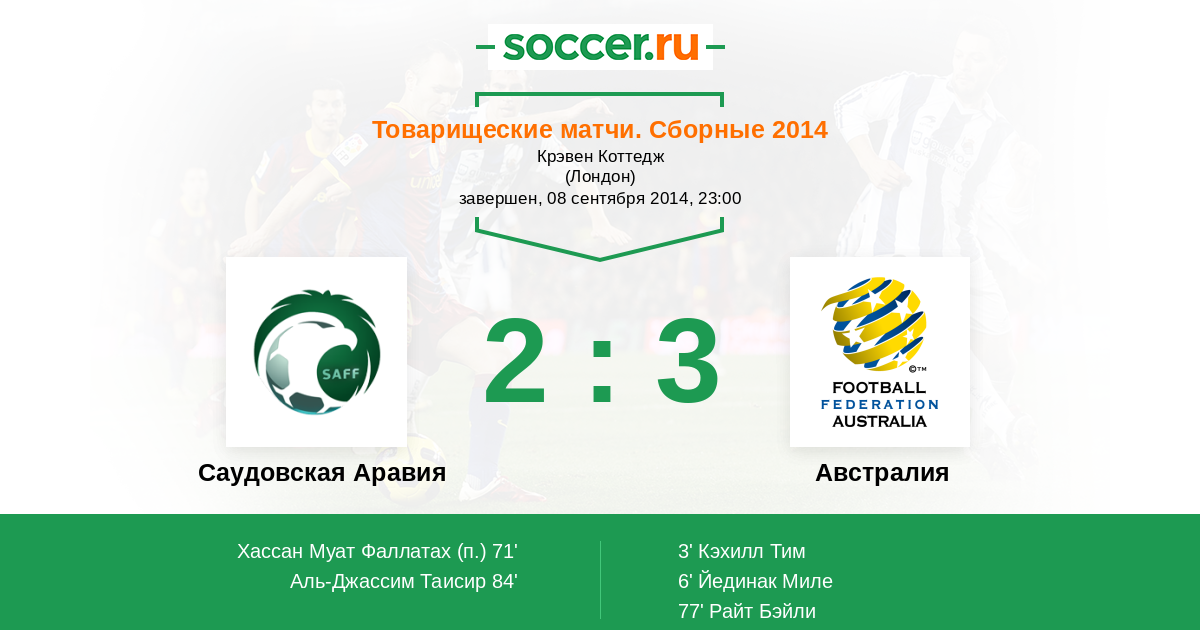 Протокол матча Саудовская Аравия против Австралия