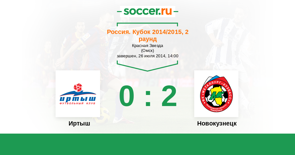Россия. 2-й дивизион. Восток 19.07.2014 Иртыш Логотип футбольный клуб Иртыш (Омск) 1:2 Логотип футбольный клуб Новокузнецк Новокузнецк